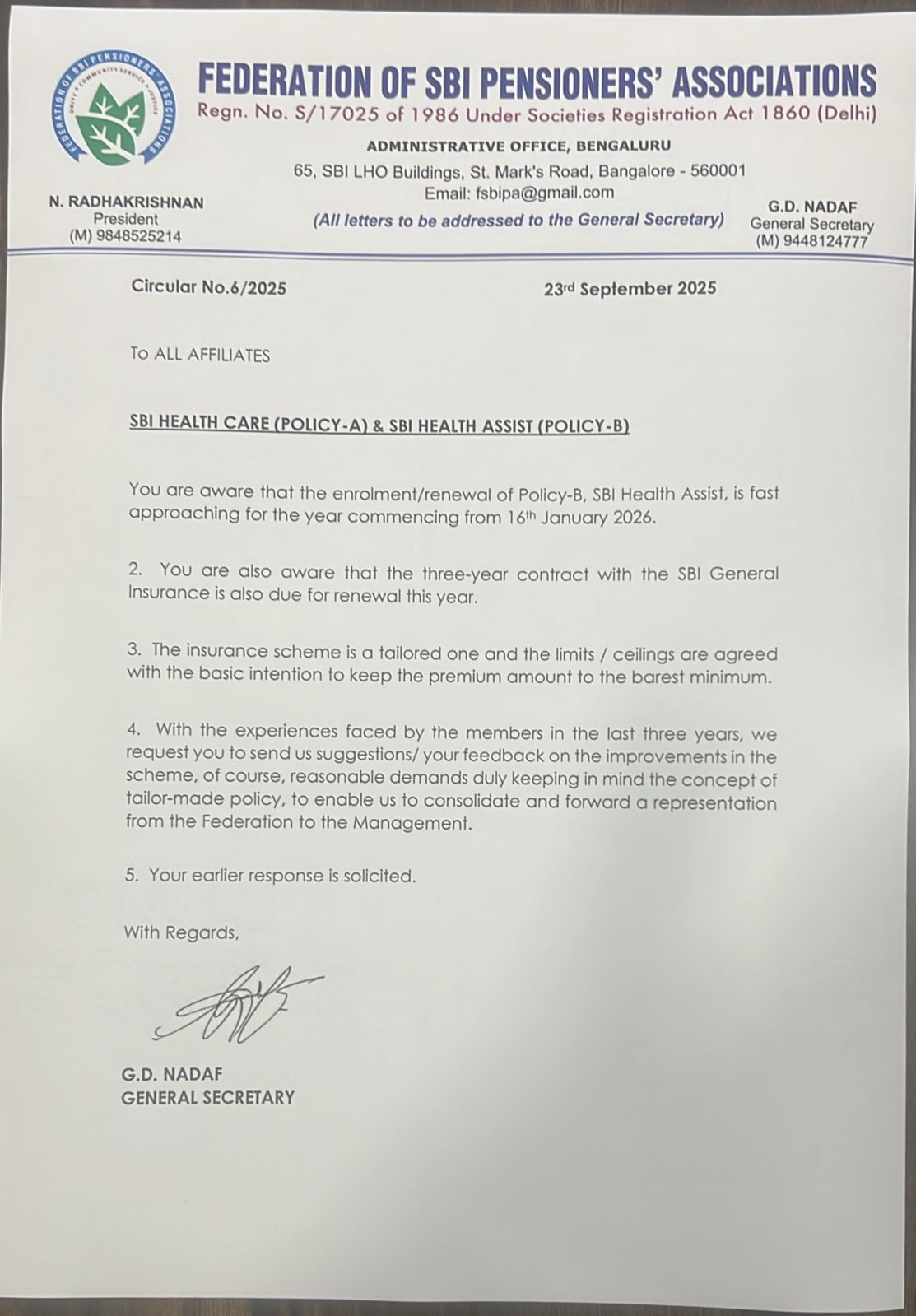 16/2025 The Governing Body of Federation of SBI Pensioners’ Associations extends warm greetings and best wishes to you all on PENSIONERS’ DAY. 17th December 2025 View More